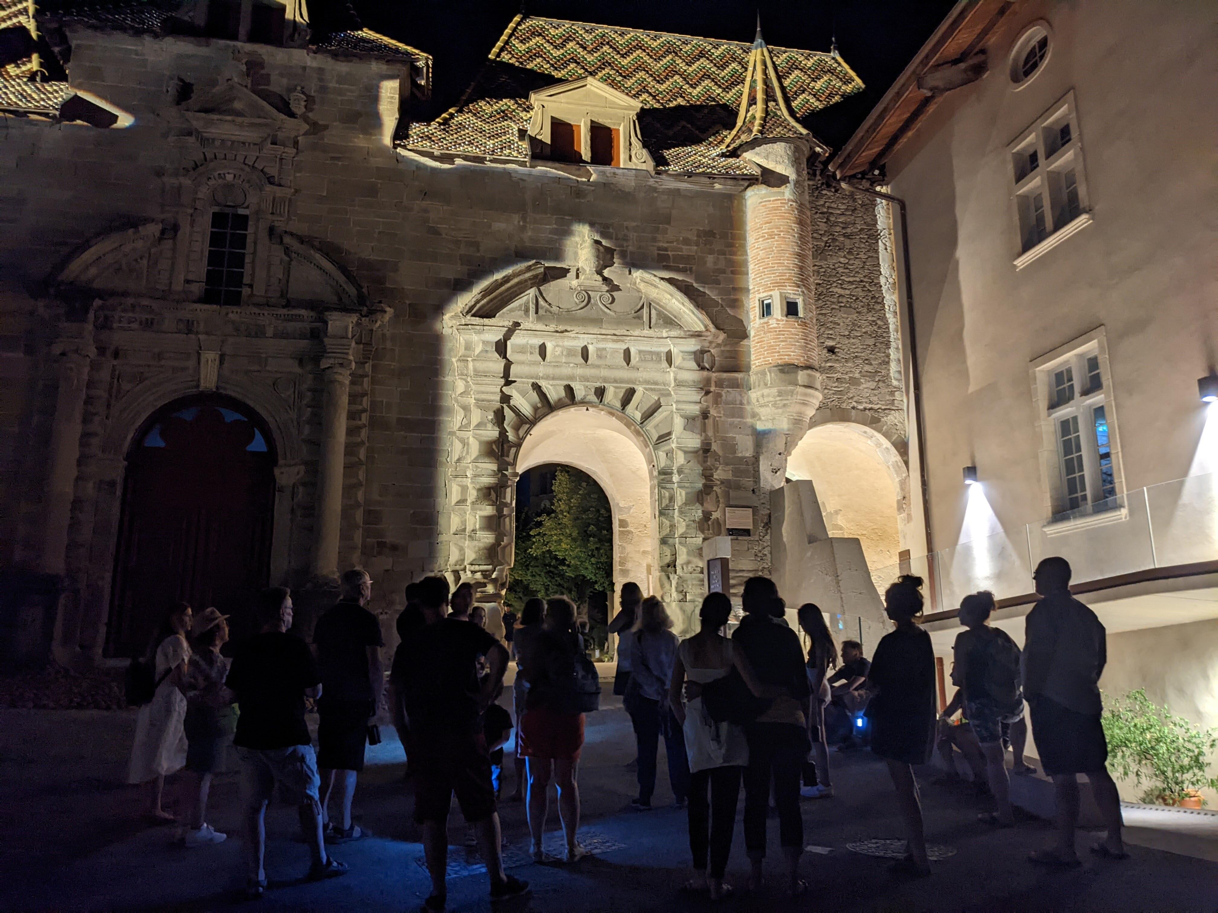 La nuit vient de tomber sur Saint-Antoine-l'Abbaye et ses ruelles. Quelques lampadaires éclairent les rues et la Grande Cour. A la nuit tombée, le village prend d'autres couleurs et ambiances. Traversez le temps, et apprenez des anciennes histoires.